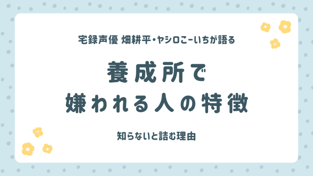 【宅録声優】畑耕平・ヤシロこーいちがぶっちゃける|養成所で嫌われる人の特徴3選