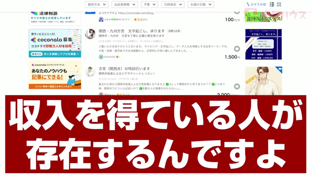 ココナラなどのサービスで出品ページを作成し、自分ができそうなジャンルを調べてみてもいいですね💡