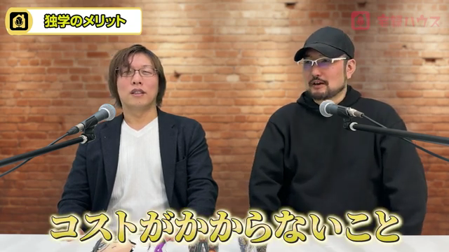 独学は学費ゼロで始めやすく、宅録でYouTubeナレーター用の実践練習が即開始できます。