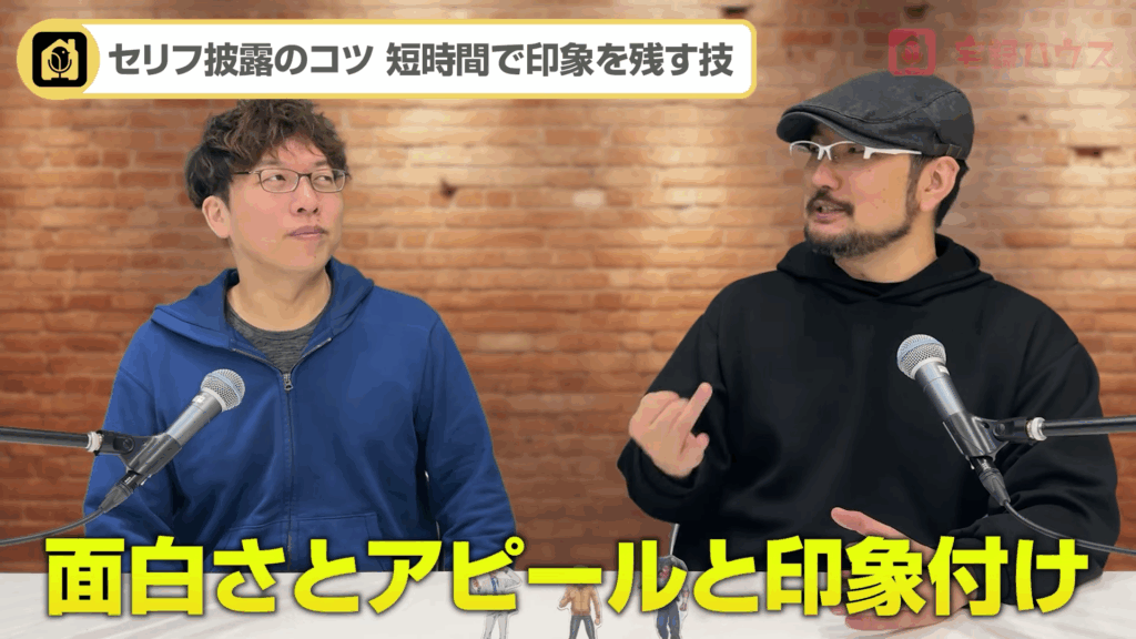 ヤシロさん短い時間で自分の強みを出せるセリフ、もしくは一人芝居を用意しておくといいですね!