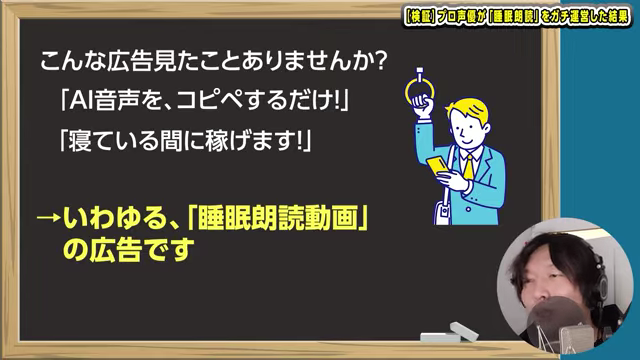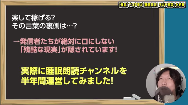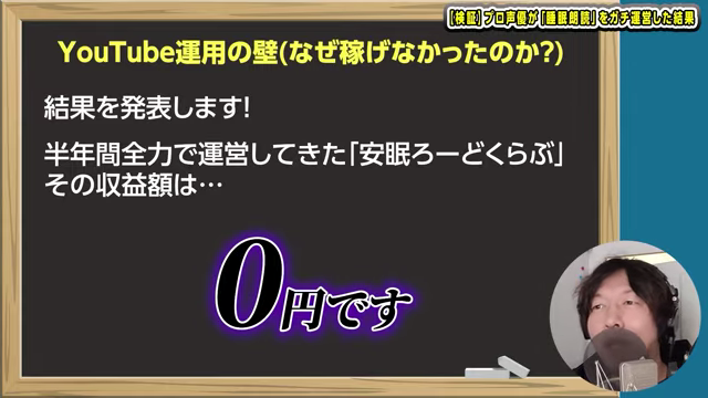 「睡眠朗読は本当に稼げるのか?」というテーマで自身のYouTubeチャンネルを半年間運営し、