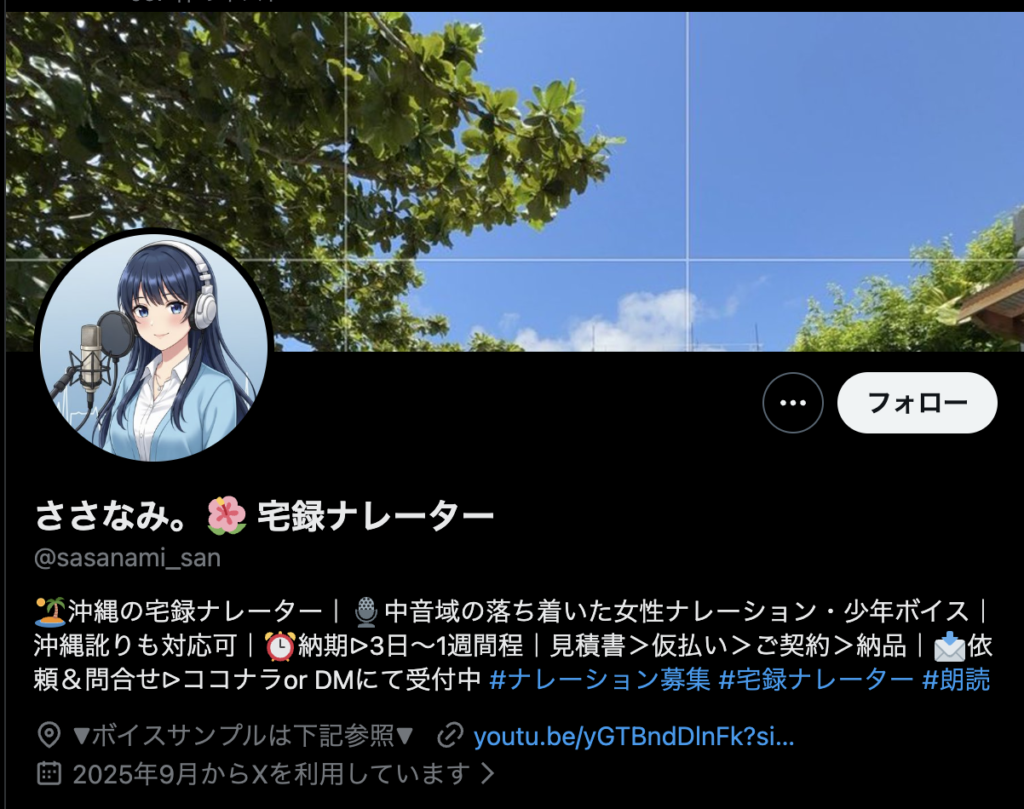 YouTube朗読案件などで継続的な依頼を獲得しています。