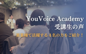 今回はYouVoice Academy(ユーボイスアカデミー(以下、YVA))で活躍する、元会社員、現役会社員、テーマパーク勤務、元バス運転士という、まったく異なる経歴を持つ4名の方々をご紹介します。