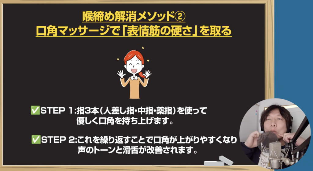 ② 口角マッサージ|こもり声を解消