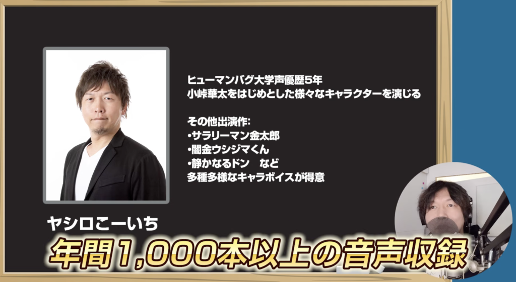 しかし、年間1,000本以上の音声収録を行い、ヒューマンバグ大学・闇金ウシジマくん・静かなるドン・サラリーマン金太郎など数々の人気チャンネルで活躍する現役プロナレーター・ヤシロこーいち氏は、こう断言します。
