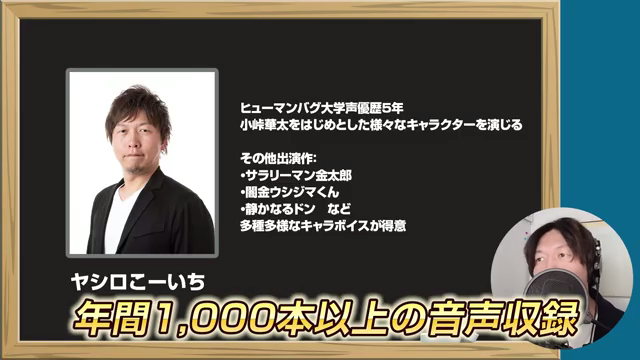 ヤシロこーいちさんは、これまで 8000本以上 の動画に出演してきた現役ナレーターです。