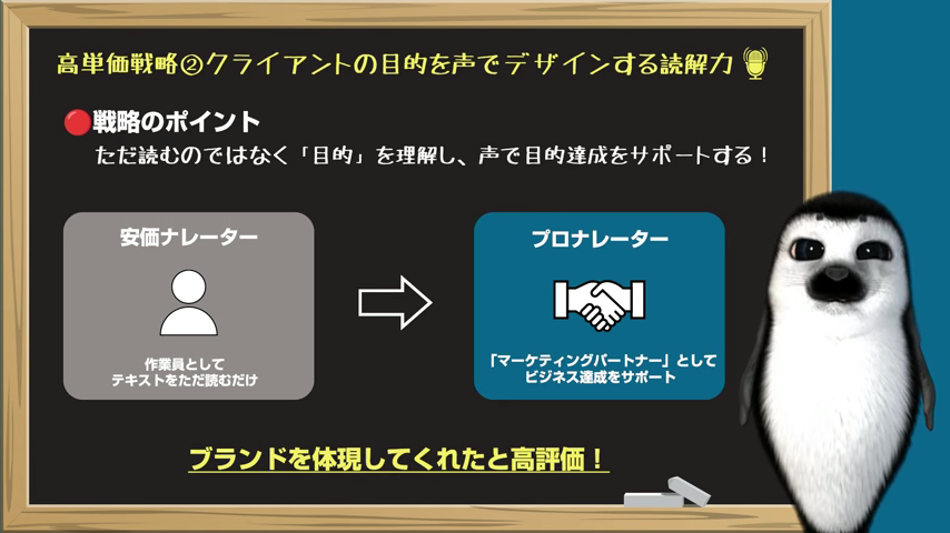| ① 声の才能より案件理解 | 目的に合わせた読み方が重要 | 特殊な声より「動画の意図に合う読み」が稼ぐ鍵。視聴者に伝わる声を提供し、クライアントから継続指名される存在を目指すべき。 |