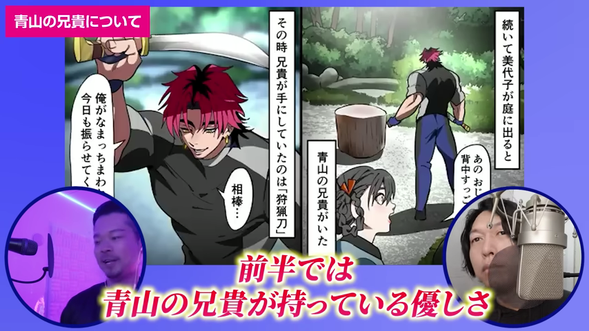 前半では、青山の兄貴が持っている優しさ、面倒見のよさ、根っこの人の良さを声に含める。