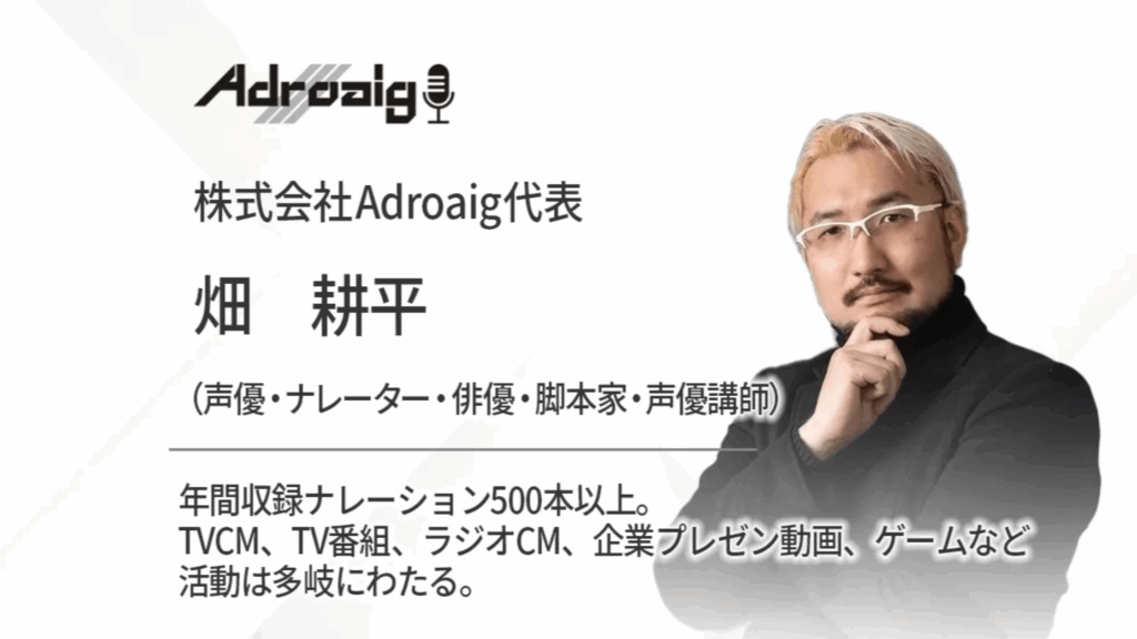 この“声の仕事”という分野を切り拓いてきたのが、数千本以上のナレーション実績を誇り、グランドセイコーやBMWのCMをはじめ数々の作品を手掛けてきた「畑耕平さん」です。