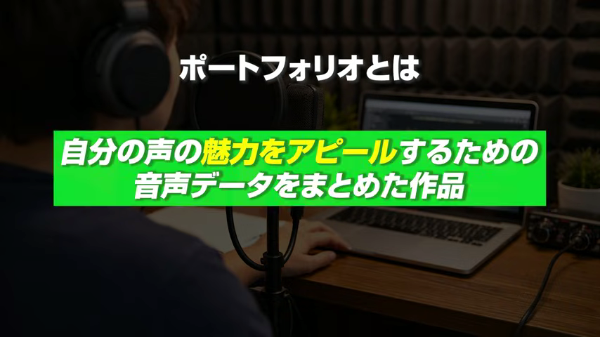 高額機材や特別な環境がなくても、録音方法、ポートフォリオの作り方、出品の仕方を理解すれば、YouTube声優として収益化を目指せると解説しています。